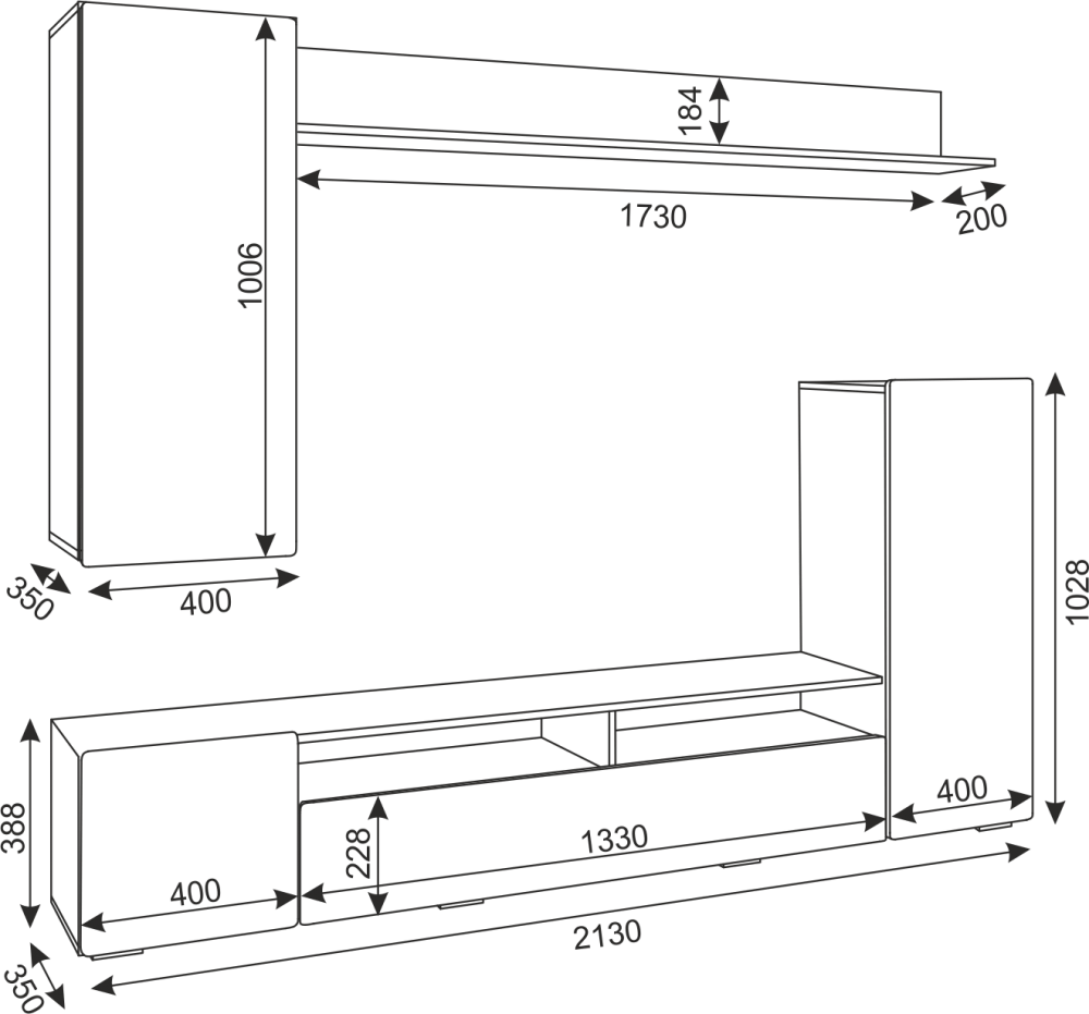 2. Гостиная состоит из двух частей: монолитной напольной и навесной.