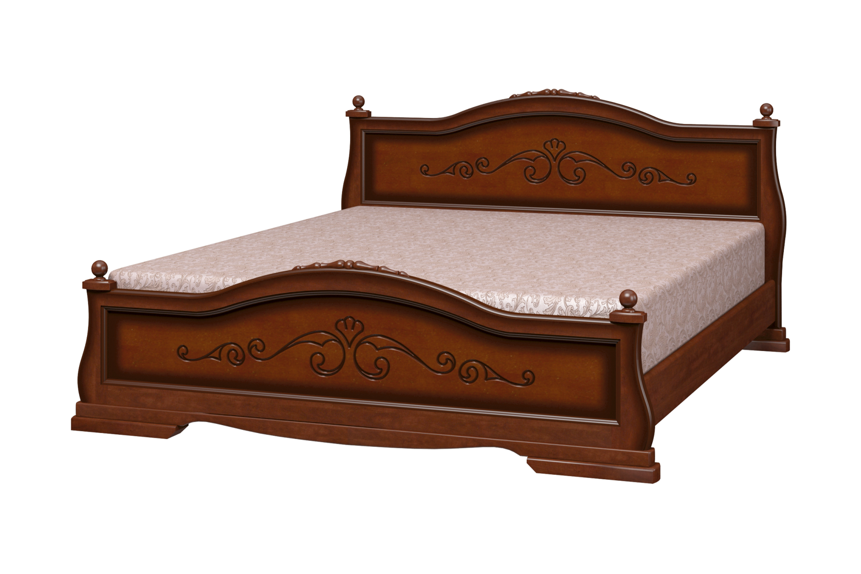 Кровати из массива серии "Карина" отлично подойдут тем, кто предпочитает классику: массив сосны, натуральные древесные оттенки, плавные формы, изящная резьба, ажурные вставки.