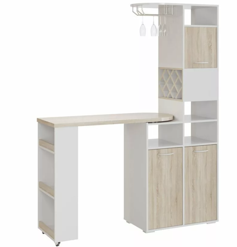 Конструкция оборудована столом с поворотным механизмом, винной полкой,